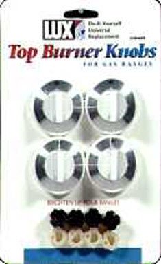 Sold as one unit. (1 unit = Pk/4.) Fits most gas ranges. Plastic inserts adjust stem shaft. Dial overlay included. Carded. White. Manufacturer number: CPR-409. SKU #: 69806. Country of origin: Taiwan. Distributed by Lux Products Corporation.