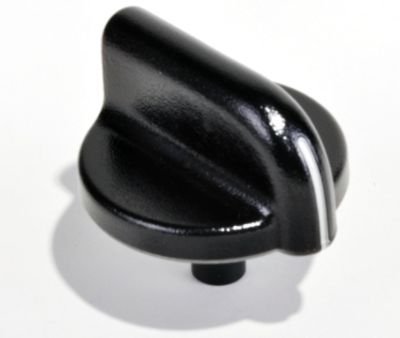 - 2 INCH DIAMETER BLACK SURFACE BURNER CONTROL KNOB WITH 1/4 INCH D-SHAPED STEM (FLAT UP) SEE ALSO: